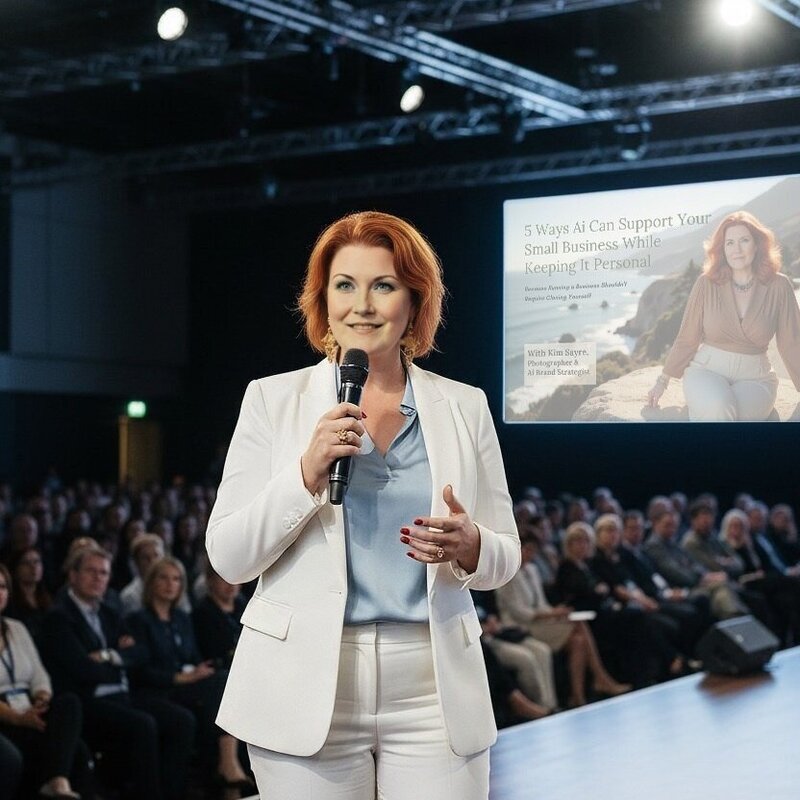 Hosted by Kim Sayre, this show is your real-life, guide to building an irresistible AF brand using AI tools—so you can skip the $7k photo shoot, ditch the 47-tab Canva spiral, and launch the damn thing already.